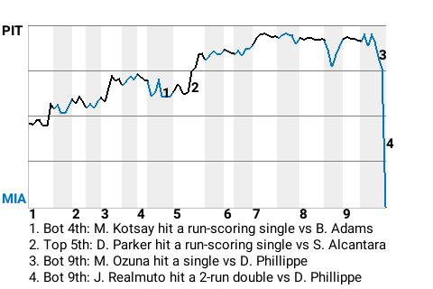 2 (9, 4th Inning off B. Adams, 0 on, 0 outs; 9th Inning off D. Phillippe, 2 on, 2 outs)