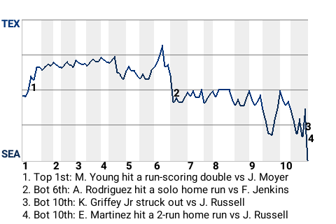 In the bottom of the tenth, with the score tied, Martinez hammered a 2-run home run to win it for Seattle.