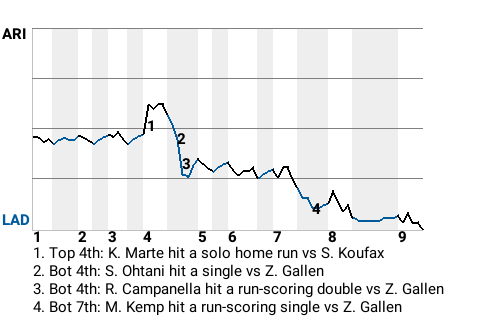 Making an impact for Los Angeles was catcher Roy Campanella. Campy drilled a run-scoring double off Zac Gallen in the bottom of the fourth. For the game, Campanella went 1 for 4 with a double.