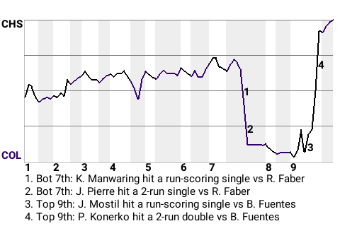 Chicago used a timely hit from Paul Konerko to get the win. The pinch hitter stroked a 2-run double in the top of the ninth inning to put the White Sox ahead, 5-3. It was his only hit in 1 at-bat, but it made an impact.