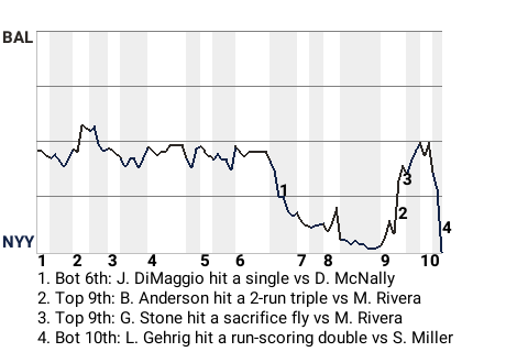 The decisive blow was delivered by Lou Gehrig in the bottom of the tenth when he hit a run-scoring double off 37-year old right-handed pitcher Stu Miller to win the game for New York. The home crowd went nuts.