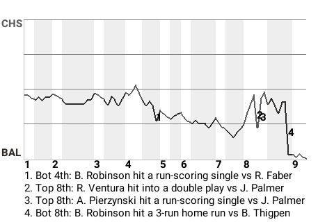 Palmer subdued the Chicago offense. The Baltimore right-hander allowed a mere 4 hits over 8 innings, while fanning 9. His season record goes to 7-7 with the win.