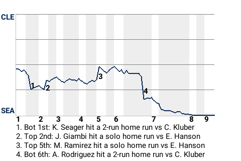 Alex Rodriguez cracked a home run off Corey Kluber in the bottom of the sixth. His 2-run blast put the Mariners on top, 4-2. In all, Rodriguez had 1 single in addition to the home run, while going 2 for 4.