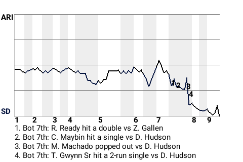 Jake Peavy was locked in. The right-hander led the San Diego Padres to a 3-1 win against the Arizona Diamondbacks at Petco Park. Trevor Hoffman, who is tied for 10th in the NL in saves with 15, earned the save for San Diego. San Diego's record now stands at 45-35, placing them second in the National League Western Division.