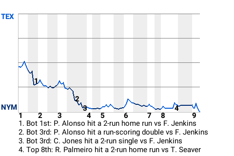 In the first inning, Alonso had a 2-run home run for New York. It was his 13th home run of the season and put the Mets on top, 2-0.