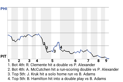 2 (27, 1st Inning off P. Alexander, 0 on, 1 out; 7th Inning off S. Rowe, 1 on, 0 outs)