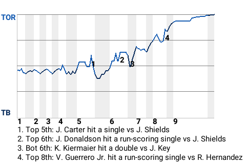 Key allowed no runs on 4 hits over 8 innings for the Blue Jays. With the win, he is 11-2 with an ERA of 2.96.
