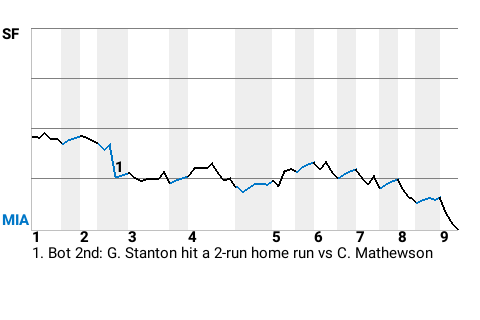 The Marlins got a big at-bat from right fielder Giancarlo Stanton. For the game, Stanton was 1 for 3 with a home run. He drove in 2 runs and scored once. In the bottom of the second, with a runner on 1st, he stroked a 2-run home run. His 15th home run of the season gave Miami a 2-0 lead.