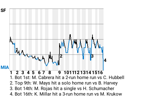 a - C. Meyers pinch hit for M. Ott in the 8th