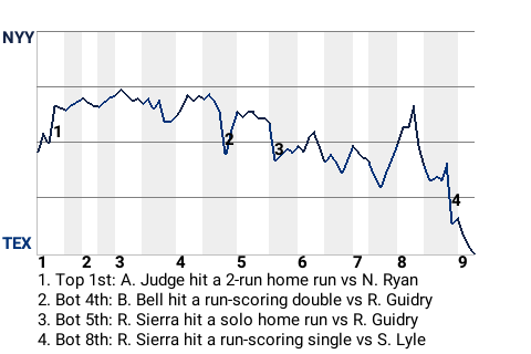 The Texas Rangers picked up a win at Rangers Ballpark in Arlington, topping the New York Yankees, 4-3. On the mound for Texas was right-hander Nolan Ryan. He played a principal role in the triumph. Francisco Cordero, credited with the win in relief, is now 2-2. He allowed no runs on 1 hit in 1 innings. Akinori Otsuka got the save, his 4th in 9 chances.