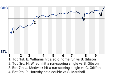 The Cubs got a big at-bat from left fielder Billy Williams. For the game, Williams went 1-3 with a home run and was hit by a pitch. In the top of the first, with the bases empty, he stroked a solo home run. His 2nd home run of the season gave Chicago a 1-0 lead.