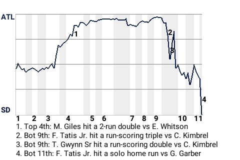 Tatis Jr. dealt the big blow in the bottom of the 11th. That's when he launched a solo home run off Atlanta pitcher Gene Garber to win it for the Padres.