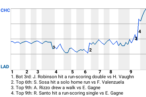 Chicago used the timely hitting of Ron Santo to seize the win. The third baseman stroked a run-scoring single in the top of the ninth inning to put the Cubs on top, 2-1. It was his only hit in 4 at-bats, but it was a game-changer.