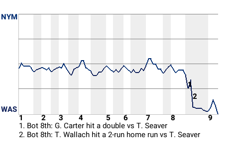 The Washington Nationals downed the New York Mets, 3-1, at Nationals Park. Stellar pitching by Steve Rogers had a lot to do with it. The right-hander, who is tied for 9th in the NL in quality starts with 16, handcuffed his opponent all game. Washington is now 47-65, New York 63-50.