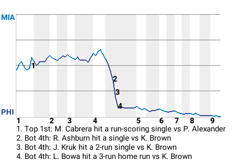 The Philadelphia Phillies defeated the Miami Marlins, 5-1, in National League action at Citizens Bank Park. Philadelphia pitcher Pete Alexander had a standout performance. Miami now has a record of 6-6.