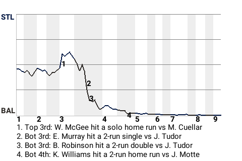 Eddie Murray, the Baltimore first baseman, contributed a 2-run single in the bottom of the third inning to make the score 2-1, Orioles. For the game, Murray went 1-4. He drove in 2 runs and scored once.