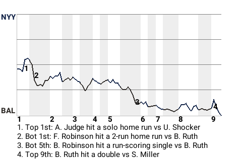 Brooks Robinson dealt the Yankees a blow in the bottom of the fifth. Batting with the bases loaded and Baltimore leading 2-1, Robinson hit a 1-2 curveball for a run-scoring single.
