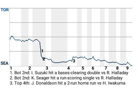 The Mariners got a big at-bat from right fielder Ichiro Suzuki. For the game, Suzuki was 1-4 with a double. He drove in 3 runs and scored once. In the bottom of the second, with the bases loaded, he stroked a bases-clearing double. His 24th double of the season gave Seattle a 3-0 lead.