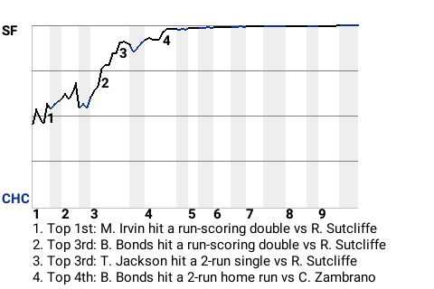 2 (34, 1st Inning off R. Sutcliffe, 0 on, 0 outs; 7th Inning off L. Lancaster, 1 on, 2 outs)