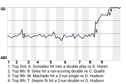 San Diego Padres starter Jake Peavy turned in an exceptional performance against the Arizona Diamondbacks at Chase Field, resulting in a San Diego win, 5-2. The Padres bumped their record to 77-51 with this win.