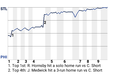 St. Louis used the bat of Joe Medwick to get the win. The left fielder hit a curveball from Chris Short out of the park for a 3-run home run. The blast came in the top of the fourth inning and put the Cardinals on top, 4-0. It was Medwick's lone hit, but it left a mark.