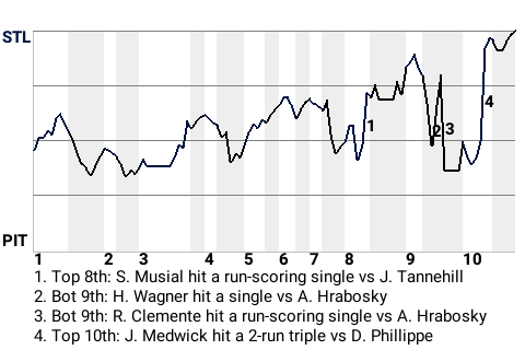c - P. Traynor substituted for R. Kiner in the 10th