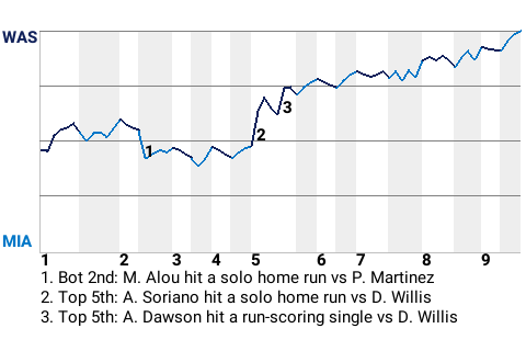 It could have been a different outcome for Washington, had it not been for Alfonso Soriano, the 30-year old second baseman . Soriano contributed a solo home run in the top of the fifth inning to put Washington up, 2-1.