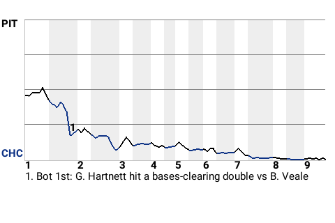 In the bottom of the first, 29-year old catcher Gabby Hartnett hit a bases-clearing double. The 22nd double of the season for the Chicago catcher put the Cubs on top, 3-0.