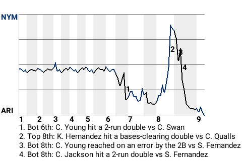 Conor Jackson helped out the Arizona cause in the bottom of the eighth inning with a 2-run double. For the game, the pinch hitter was 1 for 1 with a double, while adding 2 RBI and scoring once.