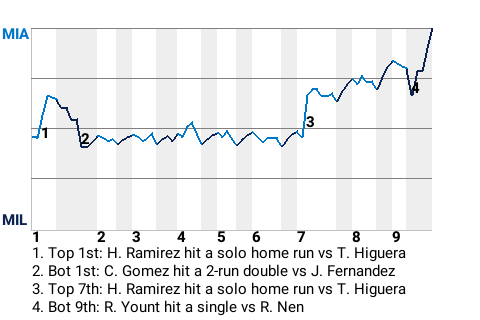 2 (9, 1st Inning off T. Higuera, 0 on, 1 out; 7th Inning off T. Higuera, 0 on, 1 out)