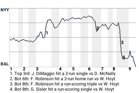 The Baltimore Orioles did just enough to sneak past the New York Yankees, 5-4, at Oriole Park at Camden Yards. Baltimore right fielder Frank Robinson, in particular, had a standout performance. Jack J Powell came out of the bullpen to earn the win. The right-hander allowed no runs on 2 hits in 3 innings. His record now stands at 3-2. Stu Miller closed out the game, earning his 25th save.