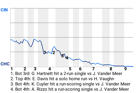 Vaughn was in the zone all game. He frustrated Cincinnati hitters while giving the Cubs 8 innings of quality work. Vaughn threw 110 pitches, allowing 3 hits and getting 6 punchouts.