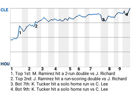 Who knows how it might've ended, had it not been for Manny Ramirez? The Cleveland designated hitter had a 2-run double in the top of the first inning to put the Indians on top, 2-0. For the game, Ramirez had 1 double and 1 single in 4 at-bats.