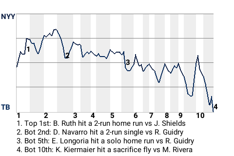 Up to bat in the bottom of the tenth, 27-year old center fielder Kevin Kiermaier had a chance to be the hero. New York pitcher Mariano Rivera wanted to foil that plan. But with one out, Kiermaier hit a sacrifice fly. The Rays had themselves a thrilling win.