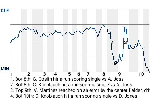 The knockout blow came in the bottom of the tenth inning. That's when designated hitter Chuck Knoblauch stepped to the plate with runners on 1st and 3rd and hit a run-scoring single, to win the ballgame.
