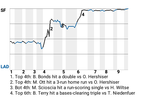 2 (31, 4th Inning off O. Hershiser, 1 on, 0 outs; 6th Inning off O. Hershiser, 0 on, 0 outs)