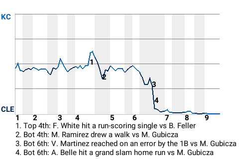 Cleveland took a 5-1 lead on Belle's 11th home run of the season. The grand slam home run, which he hit off Mark Gubicza in the bottom of the sixth, propelled Cleveland to the win.