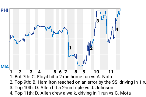 a - C. Floyd pinch hit for K. Millar in the 7th