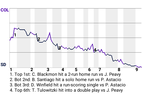 The San Diego Padres picked up a win at Petco Park, downing the Colorado Rockies, 5-2. On the mound for San Diego was right-hander Jake Peavy, who played a pivotal role in the win. Peavy yielded 2 runs over 6.1 innings to notch the win. He scattered 5 hits, walked 4, and struck out 1. His record improves to 12-9. The first-place Padres hiked their record to 93-65.