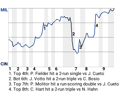 MILWAUKEE BREWERS AT CINCINNATI REDS