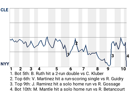 The decisive blow was delivered by Mickey Mantle in the bottom of the tenth when he hit a solo home run off 32-year old right-handed pitcher Rafael Betancourt to win the game for New York. The home crowd went nuts.