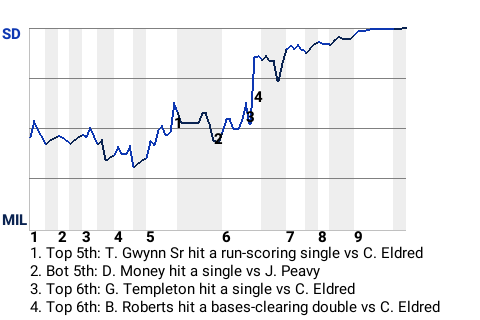 2 (3, 1st Inning off C. Eldred, 0 on, 0 outs; 6th Inning off C. Eldred, 3 on, 2 outs)