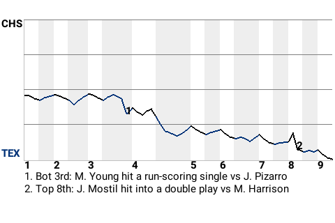 Ballpark: Rangers Ballpark in Arlington Weather: Clear skies (53 degrees), wind blowing out to right at 8 mph Start Time: 2:05 PM CT Time: 2:39 Attendance: 25890 |