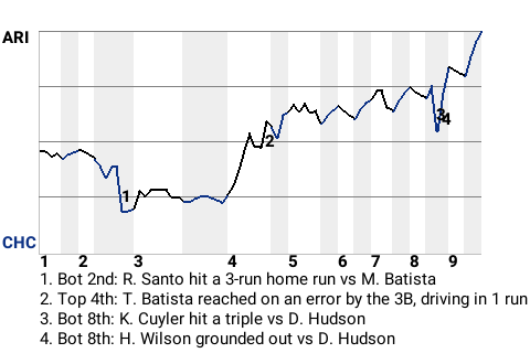 Arizona Diamondbacks starter Miguel Batista pitched effectively against the Chicago Cubs at Wrigley Field. The right-hander spearheaded his team's 4-3 win. Batista picked up the win for Arizona, going 6.1 innings. He gave up 3 runs on 3 hits. He now sports a record of 2-2. Matt Mantei nailed down his 5th save.