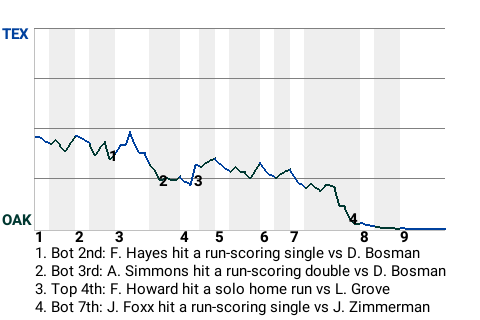 Texas had no answer for 31-year old left-handed pitcher Lefty Grove. The Oakland Athletics starter stymied Rangers hitters, helping the Athletics cruise to victory, 6-1. The loss has the Rangers at 7-14.