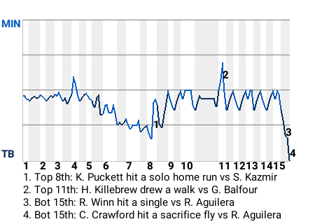The Tampa Bay Rays picked up a win at Tropicana Field, knocking off the Minnesota Twins, 2-1, in 15 innings. On the mound for Tampa Bay was left-hander Scott Kazmir. He played a pivotal role in the triumph. The defeat makes Minnesota 10-11.