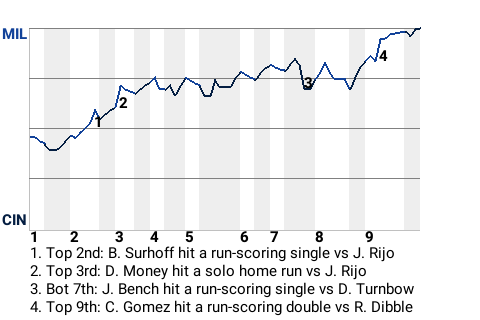 MILWAUKEE BREWERS AT CINCINNATI REDS