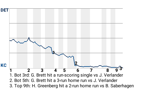 George Brett, who is tied for 9th in the AL in total bases with 56, chipped in a 3-run home run for Kansas City in the bottom of the fifth. For the game, the third baseman had 2 hits in 4 at-bats with 1 home run, 1 single, 1 run scored, and 4 RBI.