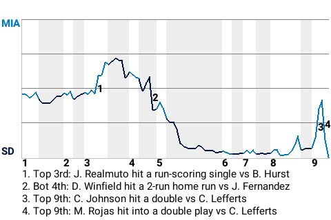 2 (9, 3rd Inning off J. Fernandez, 1 on, 2 outs; 5th Inning off J. Fernandez, 2 on, 0 outs)