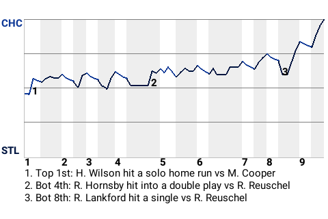 Hack Wilson, who is tied for 5th in the NL with a .935 OPS, had a direct impact on the outcome. Wilson contributed a solo home run in the top of the first inning to put Chicago up, 1-0.